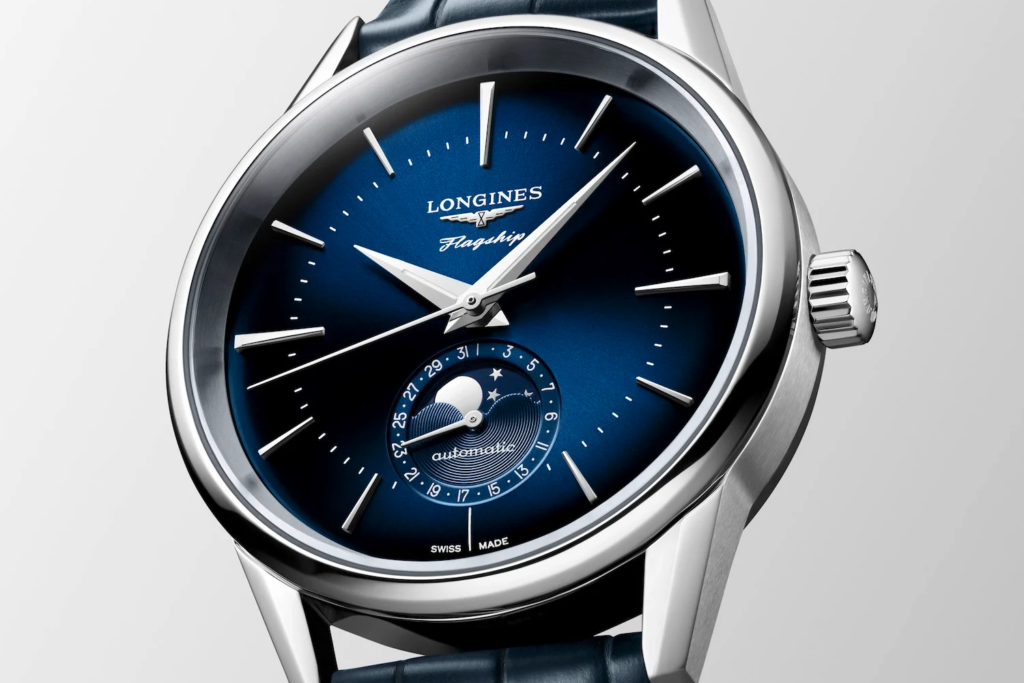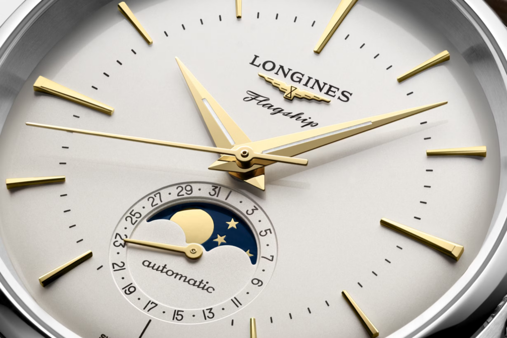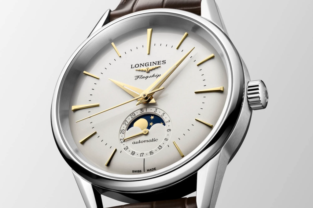 Longines’ newest 2023 offering is an updated version of their existing Flagship Heritage model, now complete with a moonphase complication at the six o’clock position.